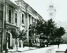 The premises of Hong Kong's two most powerful trading hongs at the time, Dent & Co. and Jardine, Matheson & Co.,[2] were located on The Praya Central, Victoria's original waterfront, on the opposite sides of Pedder Street. Dent & Co., one of the key founding members of The Hongkong and Shanghai Banking Corporation Limited,[3] had a sprawling complex which stretched along the Praya, and a west wing which abutted Pedder Street.