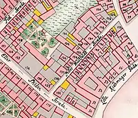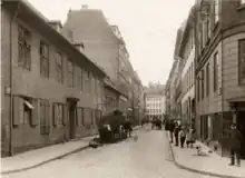 The Guild Hall of the Timbers' Guild was in the 18th century situated on the west side of the street. To its rear was an off-site section of Church of Our Lady's graveyard. It could be reached from Peder Hvitfeldts Stræde by way of a narrow passageway known as Willum Fuirens Gang.