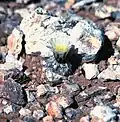 This cactus is globose, tubercular, and usually solitary. It is up to about 6 centimeters tall by 5 wide. Each areole has some wool and several slightly curved yellowish to white spines up to half a centimeter long. There are occasionally one or two central spines which are darker in color. The cactus flowers in the early spring. The flower is up to roughly 2 centimeters long by 3 wide and has red or green-striped yellowish outer tepals and straw-colored inner tepals. The fruit is green ripening red-brown and about a centimeter long.[6] The cactus shrinks and retracts under the ground during the dry season, making it very hard to find.[5] The related cacti Pediocactus bradyi subsp. winkleri and Pediocactus bradyi subsp. despainii are included as subspecies.[7]