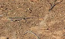 Pedioplanis laticeps, known commonly as the Cape sand lizard or the Karoo sand lizard, is a species of lizard in the family Lacertidae. The species is endemic to Southern Africa.[1][2]