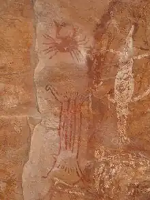 Pedra Furada (Portuguese pronunciation: [ˈpɛdɾɐ fuˈɾadɐ], meaning pierced rock) is an important collection of over 800 archaeological sites in the state of Piauí, Brazil. These include hundreds of rock paintings dating from circa 12,000 years before present.[1] More importantly, charcoal from very ancient fires and stone shards that may be interpreted as tools found at the location were dated from 48,000 to 32,000 years before present, suggesting the possibility of a human presence tens of thousand of years prior to the arrival of the Clovis people in North America.