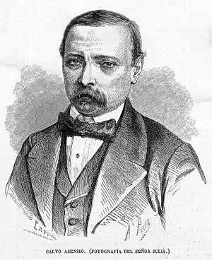 Pedro Calvo Asensio (1821–1863) was a Spanish playwright, journalist, left-wing politician and Spanish deputy of the 19th century. He was one of the most important Spanish politicians of his time. He owned and managed the newspaper La Iberia, one of the most important newspapers of the middle century in Spain.
