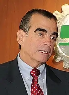 Olaechea was appointed Minister of Production on 25 May 2017, succeeding Bruno Giuffra who was transferred to the Ministry of Transport and Communications.[11] Serving during the first phase of the 2017–19 Peruvian political crisis, his tenure ended with the recomposition of the Cabinet after the failed impeachment process against President Kuczynski and promise of instituting a "Reconciliation Cabinet",[12] due to the controversial pardon of former president Alberto Fujimori.[13]