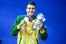 At the 2019 Pan American Games held in Lima, Peru, he won a gold medal in the Men's 4 × 100 metre freestyle relay, along with Breno Correia, Marcelo Chierighini and Bruno Fratus, with a time of 3:12.61, a new Pan American Games record.[11][12] In the Mixed 4 × 100 metre freestyle relay, he won a silver medal, by participating at heats.[13] He also finished 5th in the Men's 50 metre freestyle.[14]