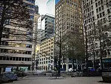 Pegasus Plaza is a public park located in downtown Dallas, Texas. Located at the corner of Akard and Main Street in the Main Street District, the plaza takes its name from Pegasus, the iconic sign atop the adjacent Magnolia Hotel and the mythical flying horse. The shaded plaza includes several fountains and is used for concerts, festivals and Christmas celebrations.