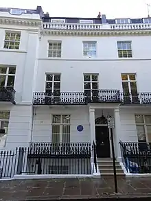 Actor-manager Nigel Playfair's former residence at No. 26 is marked by a London County Council blue plaque erected in 1965 and Francois Guizot's former home at 21 is commemorated by an English Heritage blue plaque placed in 2001.[5][6]