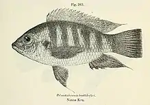 2. โ†‘ Peter Humphry Greenwood (1987). "The Genera of Pelmatochromine Fishes (Teleosti:Cichlidae). A Phylogenetic Review". Bulletin of the British Museum (Natural History). 53 (3).