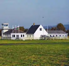 Pembrey West Wales Airport (Welsh: Maes Awyr Pen-Bre) is located 6 NM (11 km; 6.9 mi) west northwest of Llanelli (9 NM (17 km; 10 mi) south of Carmarthen)[1] in Pembrey, Carmarthenshire, in Wales. Pembrey has one hard runway designated as 22LH/C and 04RH/C. The airport and its ICAO code EGPF were withdrawn from the Aeronautical Information Publication in July 2022.[2]