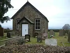 There are two farms, Cas-Troggy and Penyrheo, and a Methodist chapel on the main road. The chapel recently celebrated its 121st anniversary. Services are held on the second and fourth Sunday of the month at 3.00pm.[1] There are also the remnants of a Baptist Chapel, known as "Pen Y Well". Gravestones in the churchyard date from the 18th century.[2]