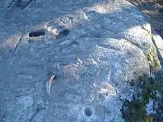 The region was occupied since pre-history, as evidenced by the proliferation of megalithic monuments, stone settlements and castros.[3] This includes the Menhir of Luzim, a 2.5 metres (8.2 ft) tall stone dating to an occupation of 3–4000 years B.C. Similarly, in the civil parish of Luzim, are the rock engravings that have existed for 3000 years.[3] In addition, there are various rock forts (castros), subject of archaeological studies, such as the archaeological "city of the dead" in Citânia de Monte Mozinho.[3] One of the largest in the Iberian Peninsula, it was the precursor to the Galician organized community of Cividade Gallaeci; the hill fort is dotted with traces of various cultures: Galician-Lusitanian, Roman, Visigoth and Moorish.[3] There different legends that indicate the origins of the name Penafiel, although the common thread associates it with the many forts situated in the locality.[3]