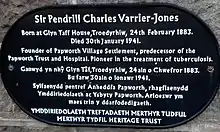 Plaque marking the birthplace of Varrier-Jones at Glyn Taff House, Troedyrhiw, south Wales