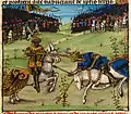 Folio 70r.: Alexander killing Porus in single combat before their armies.