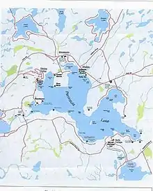 Peninsula Lake is a mid-sized cold-water lake located just east of Huntsville, Ontario.[3] Municipal jurisdiction is split between the Town of Huntsville and the Township of Lake of Bays. The Lake encompasses a surface area of 868.8 ha (8.6 km²) and a total shoreline of 27.4 km.