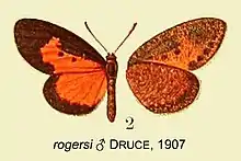 Pentila rogersi, or Rogers' pentila, is a butterfly in the family Lycaenidae. The species was first described by Hamilton Herbert Druce in 1907. It is found in Kenya and Tanzania.[2] The habitat consists of coastal forests and lowland forests at altitudes ranging from sea level to 900 metres.