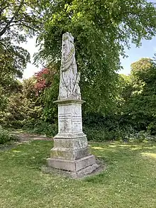 In 1884 two large arched entrance gates at the two junctions to Park Drive and Welholme Road were erected with a plaque detailing the gift of the land by Heneage. These dramatic entrance features were built be Young & Akridd of Hull for £150 per set in 1884. The gates unfortunately were removed in 1943 due to the war effort. It is believed the gates were a standard design produced by Grahamston Iron Company Ltd, Falkirk, Scotland. The entrance gates provided a grand entrance to the houses built facing the park and gave a feeling of privacy to the residents. In 1887 a Glass House was built, which today has been replaced by the Floral Hall, while in 1889 a drinking fountain was installed, paid for by public subscription. In 1894 the Smethhurst Memorial was unveiled. This commemorates Alderman Henry Smethurst (1819–1892), Mayor of Grimsby in 1886 and 1887. The monument is Grade II listed.[3]