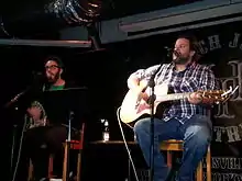 Ryan Hamilton and Jaret Reddick decided to start writing songs together after Hamilton's band, Smile Smile, opened for Reddick's band, Bowling for Soup, on a few of their tour dates.[2][5][6][7][8] After four days of writing, the duo had written six songs, which later resulted in the formation of the band People on Vacation.[5] The band began streaming a song, "Better Off Dead," on their official site in late 2010.[2] During his eleventh Bowling for Soup podcast regarding the band's newly announced side projects, Reddick played a demo that he described as "the first People on Vacation song," titled "Rainy Day."[A][6][9] The band has since announced they have written and recorded fifteen songs[6][7][8][9] and planned to release album in Fall[10][11] 2011,[2][5][6][12][13][14] through Kirtland Records.[2][12] The band released another song, titled "She Was the Only One," as a free download via Twitter as a "Tweet for a Track" promotion, in addition to streaming it on their official site in January 2011.[2] The band's music video for "Better Off Dead" premiered on the Dallas Observer website on January 19, 2011.[12] In an interview with aduioADD, Hamilton jokingly named the album Buskin' & Name Droppin'.[11] Another song, "Because of the Sun", was played live on 102.1 FM for the first time in March 2011.[15] In order to promote the project, the band joined Bowling for Soup's 2011 UK Acoustic Tour as an opening act, alongside Linus of Hollywood and Erik Chandler and the Mulberry Street Socialites.[16][17][18] In July 2011, Reddick explained the band expects "a long EP out around the end of November, with a full length album hoping to be out by next summer with all new material," stating the band has fifteen songs that are "written, recorded, done" except for drums while they have written six to eight other songs that have yet to be recorded.[19] The band had its CD release show for The Carry On EP on November 24, 2011, at the Kessler Theater in Dallas, Texas.[20] Reddick announced in a recent podcast that People on Vacation would be making a music video for the song "Where Do We Go," which the duo filmed with Built By Ninjas in January 2012.