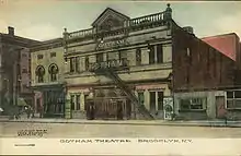 Williams bought the Brooklyn Music Hall in 1897, later changing its name to the Gotham. He also ran the Novelty in Williamsburg, Brooklyn, sometimes shuttling acts by carriage so they could play both theaters on the same day.[3] The Vaudeville Managers Association was formed in 1900 in an attempt to contain the salaries paid to performers. Williams refused to join. He believed in paying well and giving the performers good conditions. Performers found him a modest and approachable man, and enjoyed working for him.[5] Williams' third theatre was the Orpheum in Brooklyn.[3] He opened the Orpheum in 1901 on a plot of land he had bought in 1895. At the time it was thought to be the most beautiful theater in the world.[5]