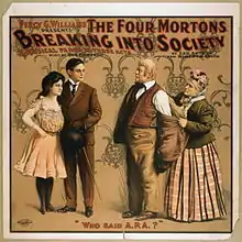 William's Orpheum Company advertised "Clean Shows in Clean Houses." In 1907 Mae West performed at the Gotham Theater as a child actor in Hal Clarendon's stock theater company.[10] Williams looked for acts in Europe, and signed contracts with Vesta Victoria, Vesta Tilley and Marie Lloyd among others.[2] In 1909 Williams joined The Lambs, the famed theatrical club.[11][12] In 1910 Williams staged a production called The Wow-Wows at the Alhambra, Bronx, Orpheum, Greenpoint and Colonial Theatres. Players who appeared in this show included Charlie Chaplin and Stan Laurel.[1] In 1910 Williams was managing more vaudeville theaters in New York City than any other. He had two in Manhattan and one each in the Bronx, Brooklyn and Queens. He said that after several trips to the Old World to search for talent he found that all he was looking for was in the USA.[13] He said of vaudeville performers,