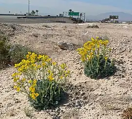 The dwindling of the Mojave poppy bee's preferred poppies has been more pronounced because recent efforts to urbanize the desert landscape involve uprooting the plants to facilitate urban expansion. However, another threat to the poppies and the Mojave poppy bee is gypsum mining. There are three gypsum mines in the bees' range that dig up the gypsum substrate that the poppies grow in and that the bees nest in.[3] The Bureau of Land Management approved expansion of gypsum mining in 2018 despite the endangered status of the poppy species and the importance of this habitat for the Mojave poppy bee.[12][3]