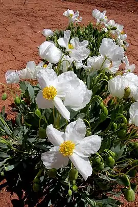Climate change has placed stress on the bear-poppies' life cycle and the Mojave poppy bee's life cycle, by causing a disconnect between flowering times and active periods in bee populations.[3]