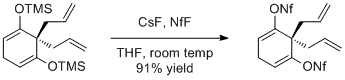 Trimethylsilyl enol ethers react with NfF in the presence of a substoichiometric fluoride source at 0 °C to ambient temperature to give alkenyl nonaflates in moderate to good yields. Dried Bu4F was the preferred fluoride source in one study,[6] but CsF has been used in difficult cases with excellent results.[7]