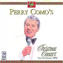 Perry Como's Christmas Concert is a 1994 live recording by Perry Como, the last before his death in 2001. Taped at the Point Theatre in Dublin before a live audience of 4,500 which included Irish President Mary Robinson, the concert was also issued on videotape and broadcast in the USA on PBS.[3] Como, looking frail and unwell was suffering from the flu and struggled to perform; he reportedly lost his voice at one point during the concert. [4] The entire performance is less than 90 minutes long, though the recording took over four hours to complete.[5] Despite it all, Como managed to complete his last recorded performance with dignity and professionalism, earning him the warm applause of his audience. Como later apologized to his audience for a performance he felt was not up to his usual standards.[6]