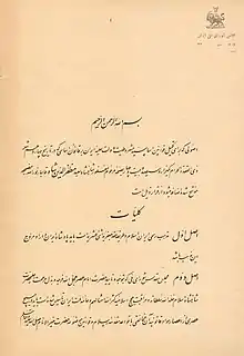 - ↑ "متمم قانون اساسی مشروطه با امضای محمدعلیشاه" [Constitutional amendment with the signature of Mohammad Ali Shah]. تاریخ ایرانی (in Persian). Retrieved 2022-08-14.