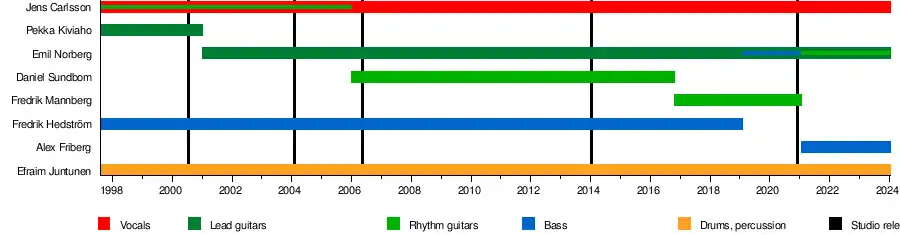 On 26 October 2016, rhythm guitarist Daniel Sundbom left the band and Fredrik Mannberg took his place; on 2 February 2019 bassist Fredrik Hedström left the band.