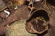 The Peru poison frog (Ameerega petersi), also known as Peruvian poison frog, Peruvian poison-arrow frog and emerald poison frog, is a species of frog in the family Dendrobatidae.[2][3] It is found in eastern Peru (Ucayali River and Huallaga River basins) and western Brazil (Acre state).[3] Its natural habitats are primary premontane and subtropical or tropical moist lowland forests, rivers, freshwater marshes, and intermittent freshwater marshes.[1]