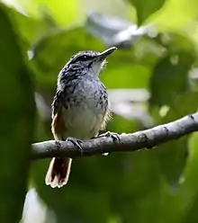 The Peruvian warbling antbird (Hypocnemis peruviana) is a species of bird in the family Thamnophilidae. It was considered a subspecies of Hypocnemis cantator, but based on vocal differences and to a lesser degree differences in plumages, it has been recommended that they be treated as separate species. As presently defined, the Peruvian warbling antbird includes a single subspecies, saturata. It has a black, white, and grey head and breast, with rufous flanks and a dull brown lower back and tail.