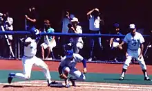O'Brien made his major league debut with the Rangers in September 1982 at age 24 and won the starting job in 1983.[1] Following the 1988 season, he was part of a multi-player trade to the Cleveland Indians for Julio Franco, where O'Brien spent the 1989 season. In December 1989, he was the first free agent signed by the new ownership group of the Seattle Mariners, headed by Jeff Smulyan.[2] The Mariners had the lowest payroll in the majors the previous season at $7.6 million; O'Brien's deal was for $7.6 million over four years.[2] Known for his defense, he took over as the regular first baseman for Alvin Davis, who became the designated hitter.