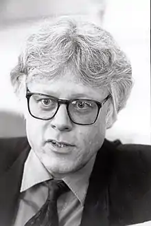 He was born into a family with a political background in the Christian Democratic People's Party.[2] After he graduated from the faculty of Law from the University of Zurich, he worked as an independent lawyer in Brig.[3] Since his early years he was interested in leftwing politics and was one of the founders the political magazine Red Anneliese.[2] In 1971 Peter Bodenmann co-founded the Critical Upper Valais movement[3] as he was 24 years old, he became a local councilor of Brig-Glis.[2] In 1982 he opened a law office in Brig and in the same year the movement Critical Upper Valais merged with the SP Upper Valais.[3]
