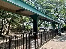 Local residents protested the proposed location of the pedestrian footbridge, saying that it would encroach upon the park. A petition with over 2,500 signatures was sent to Mayor Vincent R. Impellitteri asking for playground equipment to be installed in the park in lieu of the pedestrian overpass.[4][9] Some residents wanted the location of the overpass shifted further north to East 54th Street.[10] However, the city moved forward with constructing the pedestrian overpass across the park at East 51st Street, which was completed in 1952.[11]