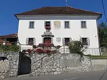 Glavar returned to Carniola around 1743.[2] He settled in Komenda in northern Carniola, where he established a school in 1751, and erected a benefice building with a library in 1752.[3] The library still stands and comprises around 2,000 books from a multitude of fields of science and arts.[1][3] A mighty lime tree in Komenda was presumably planted by Glavar in 1748 and has been named after him.[4] Glavar collaborated with artists and ordered Franc Jelovšek to paint the beneficiary house and the local church.[3] From 1754 until 1760,[5] he edited the first Slovene-language parish family book, writing the data about the inhabitants of Komenda.[1] In 1761–66, he erected the High-Baroque St. Anne's Church in Tunjice.[6]