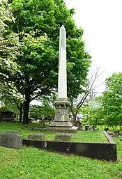 Staub was injured in a carriage accident on May 18, 1904, and died the following day.[6] He is interred in a family plot, crowned by a large marble obelisk, in Old Gray Cemetery. Staub's son, Fritz, continued to operate Staub's Theatre for several years.[3] The theater later changed its name to the Lyric Theatre and continued to host performances until 1956, when it was demolished. Knoxville's tallest building, the First Tennessee Plaza, now stands at the site.[9]
