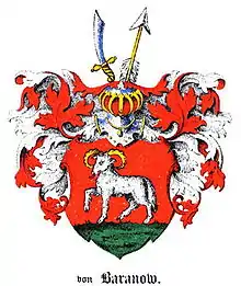 Peter was from the Baltic German and Swedish noble Baranoff family of Swedish and Russian descent. The Baranoffs was originally Russian boyar who entered Swedish service after Estonia was ceased to the Swedish under the conclusion of the Treaty of Teusina at the end of the Russo-Swedish War From 1590 to 1595. And many of them, quickly adapted to the Germanic traditions, converted to Lutheranism, and quickly became Baltic German subjects, including the Baranoffs, which was headed by four brothers: Voin, Fyodor, Kasyan and Menshik Baranov,[3] which they changed their surname from Baranov to Baranoff to be better suited into Germanic name. The descendants of Voin and Fyodor quickly died out in the late-17th Century, while the descendants of Kasyan survived they died out in the late-19th Century, but the descendants of Menshik, which Peter was directly descended from, are still surviving til today.[4] The family was enrolled into Swedish nobility in 1666. In 1745, the Estonian high count gave an appeal the "Attestatum nobilitaris", that under the conclusion "that from 1592 on the Baranoff family was to be brought under local nobility". So the family was enrolled into the Estonian Knighthood that same year, the family was also enrolled into the Livonian and Oesel Knighthoods (de) following the years 1830 and 1843 simultaneously.[5]