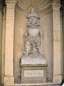 Petermännchen (English: "Little Peterman") is a small good-natured household spirit who is said to live in the Schwerin Palace in Schwerin, Mecklenburg, Germany.[1] The diminutive spirit, maybe only a few feet tall, is often described as carrying many keys, roaming through the vaults and tunnels underneath the castle, unlocking doors as he goes. Other descriptions of Petermännchen have him carrying a lantern and a sword or dagger. He is also said to be the keeper and watchman of the castle, rewarding those who are honest and good. Conversely the spirit will punish or drive away thieves and intruders. To do so Petermännchen will cause a nuisance or play pranks. The spirit is said to make crashing and banging noises at night. Petermännchen is also said to have woken soldiers who fell asleep on their night-watch in order to save them from being punished.[2][3]