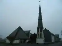 The festive consecration of the new branch church in Löffelscheid, the Church of the Visitation (Maria Heimsuchung) was held on 5 July 1964. The patron is Mary, and a secondary patron is Saint Nicholas. The church is a round building (two cones were set into each other). The architect was Bruno Schönhagen of Koblenz. The high wall stands along with the old retable (Holy Trinity) as emblematic of the Mother of God, the Saints and Christ in the tabernacle. The smaller cone “bears” Salvation – the Eucharist – the altar and the confession chapel. The church's ceiling surrounds one like the protective mantle of the Mother of God. The pews stand in semicircular rows around the altar, which is a simple table made of red sandstone. The bell tower does not directly adjoin the church and has a height of 28 m.