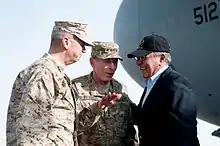 John R. Allen (born December 15, 1953) is a United States Marine Corps four-star general. On July 18, 2011, Allen assumed command of International Security Assistance Force (ISAF) as Commander, U.S. Forces Afghanistan (USFOR-A), succeeding Army General David Petraeus.[40] He has been appointed NATO's Supreme Allied Commander, Europe, to take office in early 2013, pending confirmation by the United States Senate.[41] On November 13, 2012, Defense Secretary Leon Panetta said that Allen's nomination for SACEUR would be "delayed". News agencies reported that Allen's communications with Jill Kelley, a Tampa woman who was friends with Allen's predecessor as top commander in Afghanistan, David Petraeus, were under investigation. Petraeus had resigned as Director of the Central Intelligence Agency four days earlier.[42]