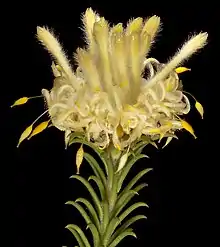 Petrophile recurva is a species of flowering plant in the family Proteaceae and is endemic to south-western Western Australia. It is an erect, many-branched shrub with needle-shaped, sharply-pointed leaves, and spherical heads of hairy pale yellow or cream-coloured flowers.