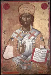 Petros Lambardos (Greek: Πέτρος Λαμπάρδος, 1500 – 1550), also known as Petro Lambardou (Greek: Πέτρου Λαμπάρδου) or Petrus Lambardo. He was a Greek Renaissance painter from Crete. One of the earliest recorded members of the Lambardos family of painters. He comes from a famous family of painters from the island of Crete. Similar to the Bathas, Moskos, and Tzanes family. The family had many notable painters. Emmanuel Lambardos has the largest catalog of works. Two other notable painters of the same last name were Ioannis and Tzortzi Lambardos. The family were major contributors to the Cretan painting style. Three of Petros's paintings survived. The Virgin Mary painting is in Cyprus, Christ the High Priest is at the Benaki Museum and John the Baptist is in Palermo, Italy.[1][2][3][4][5][6]