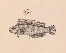 Petroscirtes ancylodon, the Arabian fangblenny, is a species of combtooth blenny found in the western Indian ocean, and since 1989 recorded on occasion in the Levantine waters of the Mediterranean Sea, a likely entry from the Suez Canal.[2][3] Males of this species reach a length of 11.5 cm TL while females reach a maximum length of 7.9 cm SL.[4]