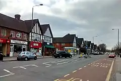 The area remained rural right up until the late 19th century; in 1872 just one house ('Ladywood') stood here.[3] Most of the modern suburb of Petts Wood was built in the late 1920s by the Harlow-based developer Basil Scruby together with architect Leonard Culliford who designed the layout of the roads.[3] A number of individual builders developed individual plots, amongst others the master builder, Noel Rees, as well as Walter Reed and George Hoad.[3] Scruby also paid the Southern Railway Company £6,000 to build Petts Wood railway station to serve the new suburb.[3] Shops and a cinema were also built adjacent to the railway.[3] The intention was to create a high quality estate in a rural setting only a short train journey from the city, with the east side being built first. Noel Rees's name is still used as a selling point by estate agents; his houses can be found in Great Thrift, The Covert, Prince's Avenue, Wood Ride, Kingsway, Chislehurst Road, The Chenies and many other roads in Petts Wood.