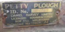 The ploughs were manufactured by Daniel Harvey,[9] a machinery maker located in Box Hill, a locality adjoining Doncaster under licence from Frank and Herbert Petty as the patent holders.