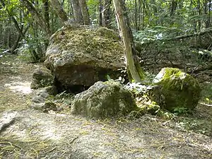 Today the dolmen is in a very bad state of conservation.[3] The dolmen also gets more and more overgrown by sweet chestnut.