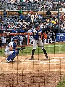 He was undrafted in the 2015 Major League Baseball draft, and enrolled at Wright State University where he played college baseball. In 2016, his freshman season at Wright State, he batted .289 with four home runs and 31 RBIs over 63 games.[2] In the summer of 2016, he stayed home and played in the Great Lakes Summer Collegiate Baseball League with the Cincinnati Steam, hitting .316 in 19 at-bats before an injury sidelined him for the rest of the summer. He missed the 2017 season after undergoing Tommy John surgery.[3] He returned to play in 2018, hitting .347 with nine home runs and 65 RBIs over 56 starts.[4] That summer, he played in the Cape Cod Baseball League with the Cotuit Kettleers.[5][6] In 2019, his redshirt junior season, he slashed .407/.538/.729 with 15 home runs and 72 RBIs over 59 games.[7]