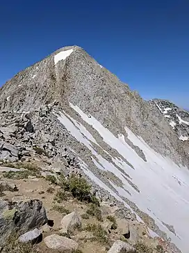 The Pfeifferhorn is the 11,331 feet (3,454 m) triangularly-shaped peak located in the most isolated part of the Lone Peak Wilderness Area of the Wasatch Mountains in northern Utah, United States. This rugged Utah mountain, commonly referred to as the Little Matterhorn, is the fifth-highest peak in the Wasatch Range. The summit can be reached by hiking, though some scrambling is required. There are several technical rock climbing routes with the north ridge being the most popular. This summit also makes an excellent winter mountaineering adventure.[3]