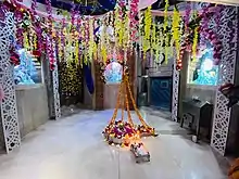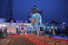 Phagwara started as a market town in the region, founded by a person name Chaudhary Phaggu Basra a Hindu Jatt landlord of the area the town's property originally belonged to him.[1] the town got its name from him fist as (Phaggu Da Wara) then evolved into Phagwara. the town was then made into a trading center by the Mughal emperor Shah jahan but later town failed as trading hub. It again eventually grew into a more rural character. In 1772 it became part of the Ahluwalia Sikh Dynasty of Kapurthala. A decade earlier, the militarist Sikh Guru Hargobind Sahib ji visited the city in 1635 near the end of his time as Sikh guru. One of his great devotees, Phagu, heard that Sahib was fighting the Mughals and coming to his city. He eventually left in shock, betraying his guru. Reacting to the situation, Sahib ji once said ‘Phagu Da Warra, Bahron Mitha Andra Khara’.[2] Thus, Phagwara’s name originally comes from that phrase.[3]