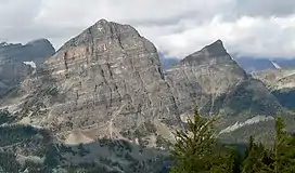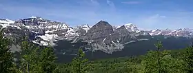 Pharaoh Peaks is a 2,713-metre (8,901-foot) mountain with three summits located in Banff National Park in Alberta, Canada. Pharaoh Peaks are part of the Ball Range in the Canadian Rockies.[3] The nearest higher peak is Scarab Peak, 2.0 km (1.2 mi) to the southwest. The mountain's name Pharaoh was in keeping with the Egyptian theme of the immediate surrounding area, e.g., Egypt Lake, Pharaoh Lake, Mummy Lake, and Scarab Lake, which were applied in 1922 by Arthur O. Wheeler of the Interprovincial Boundary Survey.[1] Wheeler regarded the area particularly beautiful when he wrote: "After 30 years of exploration, surveys and mapping the main ranges of the Canadian Rockies, the writer ... can safely say that outstanding among them for scenic charm and interest may be classed the group of peaks, lakes and alpine meadows of the Egypt Lake area."[4] The mountain's name was officially adopted in 1956 when approved by the Geographical Names Board of Canada.[2]