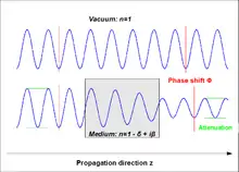 where δkz is the phase shift and e−β kz is an exponential decay factor decreasing the amplitude E0 of the wave.[8]